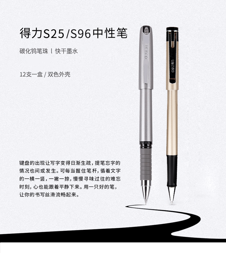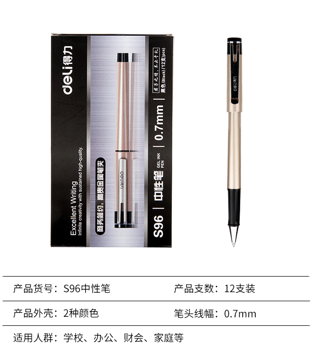 書寫用筆類用具得力/deli中性筆筆芯商務(wù)中性筆水筆簽字筆芯學(xué)生0.7mm12支S96/盒