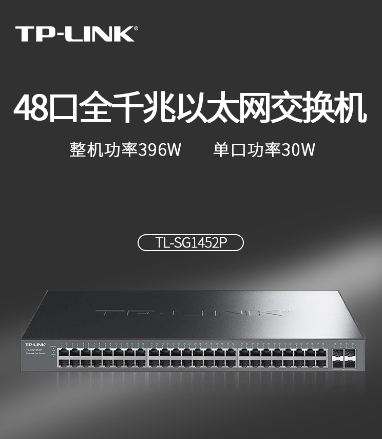 以太網(wǎng)交換機普聯(lián)/TP-LINK52口全千兆POE交換機48電口4光口企業(yè)級接入層交換機TL-SG1452P/臺
