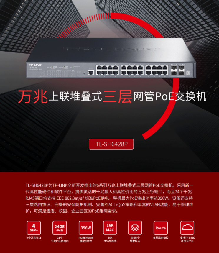 以太網(wǎng)交換機(jī)普聯(lián)/TP-LINK企業(yè)級(jí)商用核心交換機(jī) 支持VLAN 24口千兆TL-SH6428P/臺(tái)