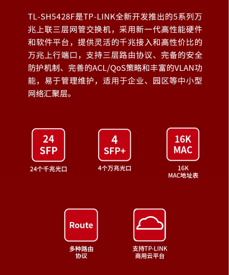 以太網(wǎng)交換機普聯(lián)/TP-LINK企業(yè)級三層網(wǎng)管交換機支持云管理TL-SH5428F/臺