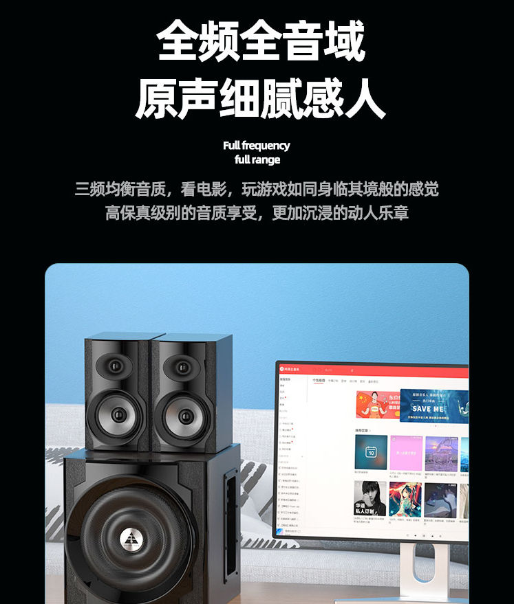 金河田/Goldenfield 臺式電腦多媒體音箱 筆記本音響 2.1聲道重低音炮 黑色藍(lán)牙版S300/臺