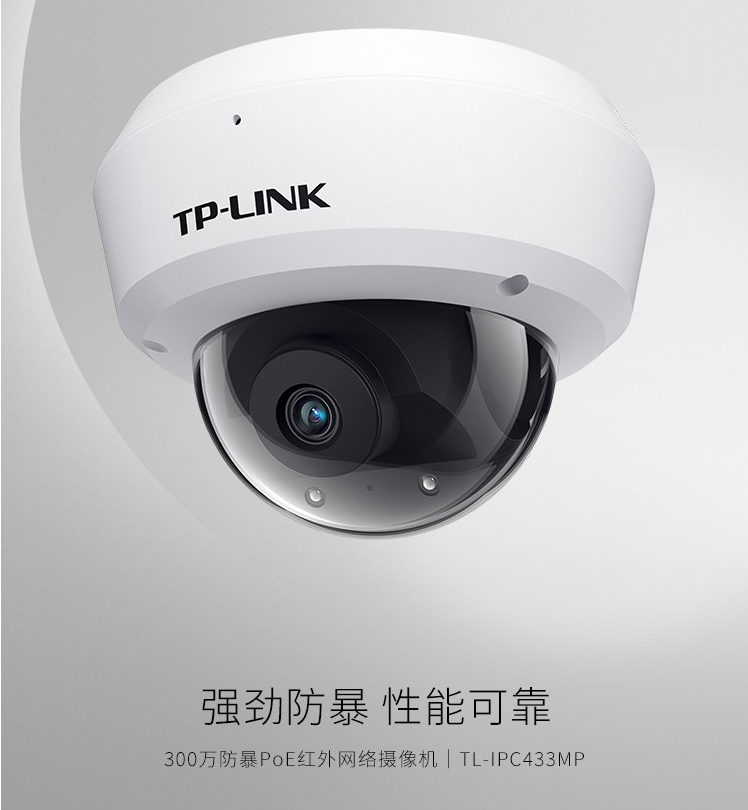 監(jiān)控?cái)z像機(jī)普聯(lián)/TP-LINK300萬防暴紅外網(wǎng)絡(luò)攝像機(jī)H265 DC電源半球高清視頻TL-IPC433M/臺