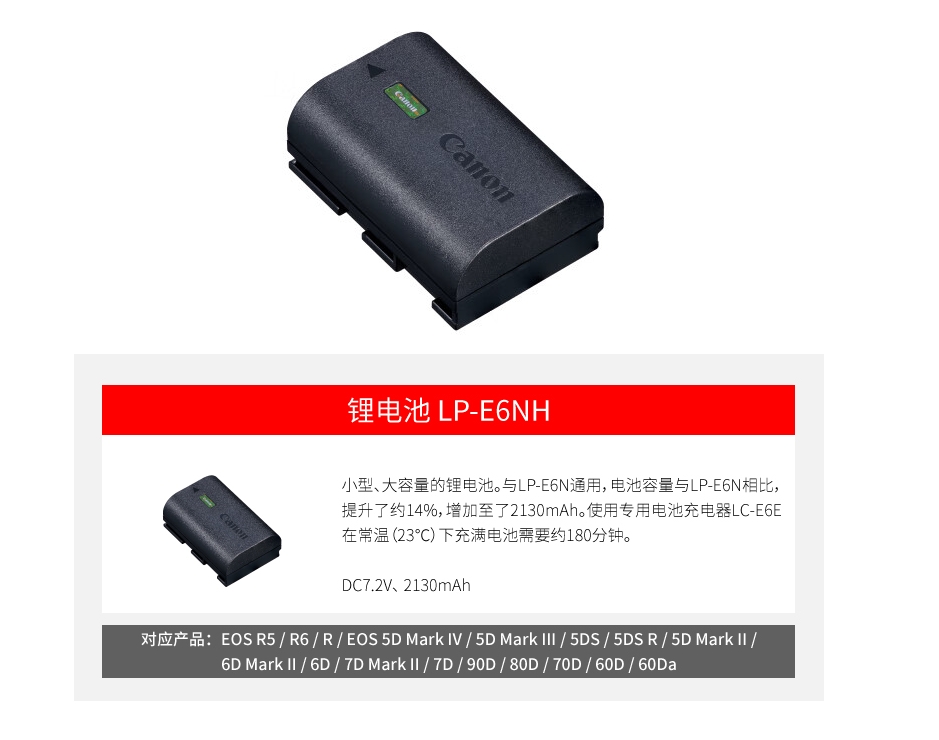佳能/CANON LP-E6NH 相機(jī)電池/充電器 原裝電池 原廠包裝